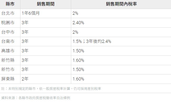 囤房稅2.0方案,也有針對建商(起造人)設定2年銷售期間內,必須以2~3.6%稅率課徵房屋稅。除了台北市外,其餘縣市在銷售期間或稅率上,都必須變得更加嚴格。