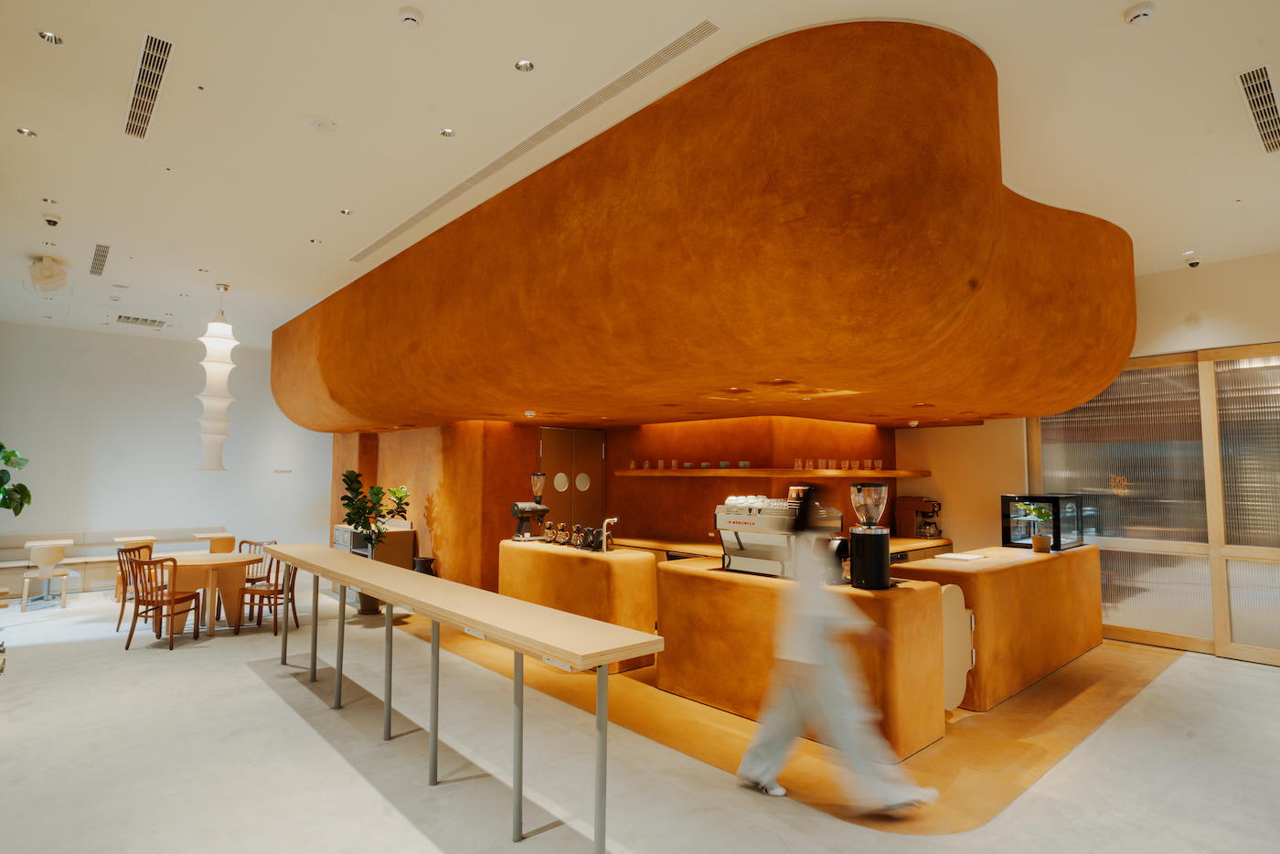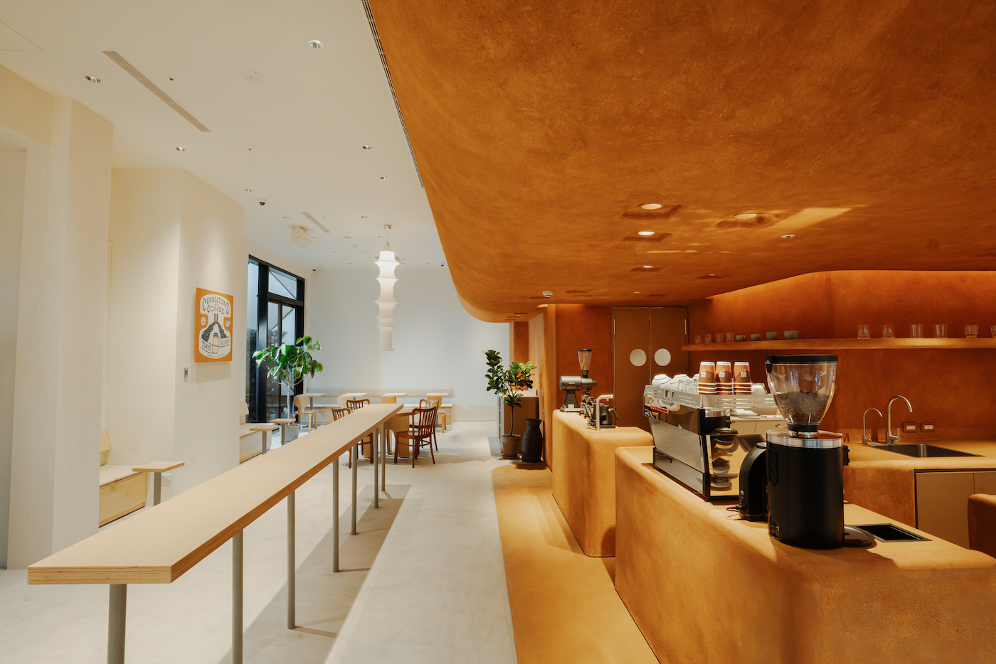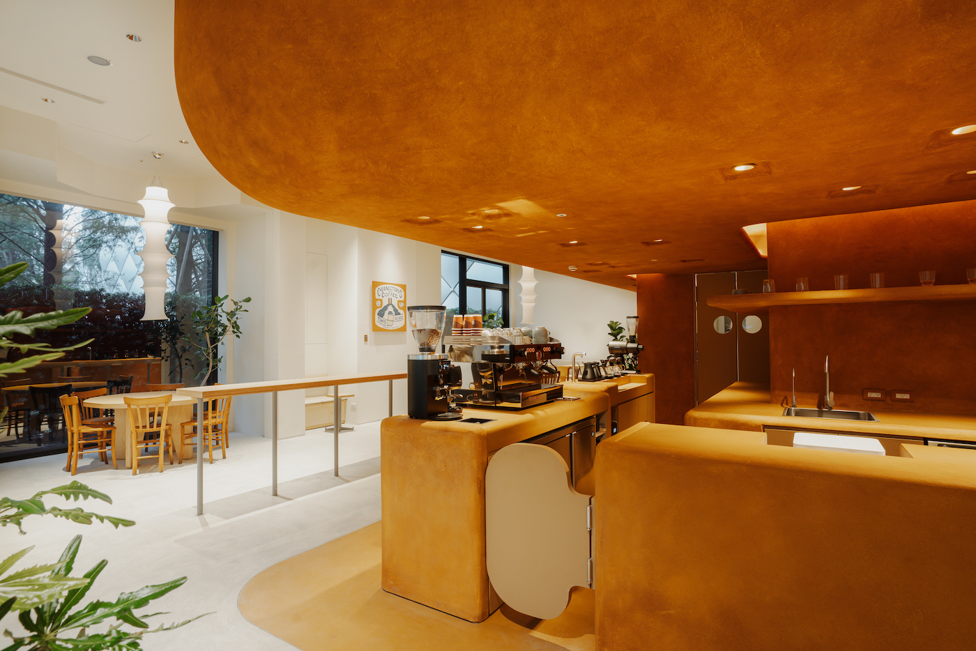 走進 ONIBUS COFFEE 台中店,蜿蜒曲面的紅泥土丘天花板、白色設計吊燈與木質桌椅緩緩映入眼簾,出自日本知名建築設計事務所 Torafu Architects 之手。團隊以多元、細膩且富創意的設計手法聞名,作品涵蓋建築、空間設計、展覽規劃與產品設計,代表作包括 Aesop日本多家店鋪設計、Aesop 台灣台中概念店、Me ISSEY MIYAKE 等多個展場設計等,ONIBUS COFFEE 那須店則為兩個品牌首度合作的起點,台灣台中店為第二次合作,意在將咖啡文化自然融入台中的日常生活。