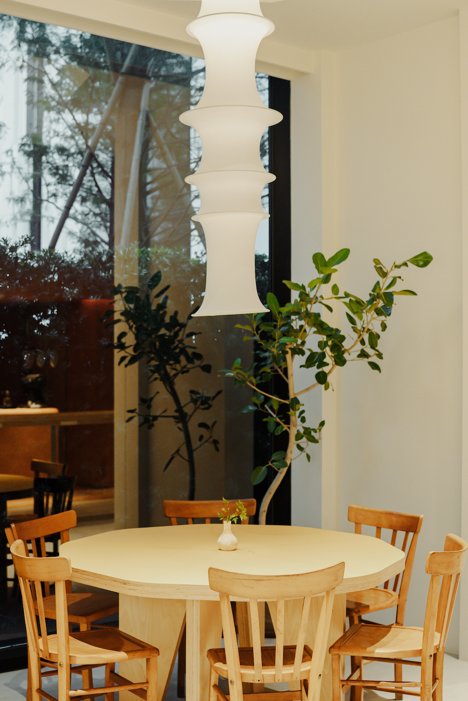 同時, Torafu Architects 找來固定合作的日本燈光設計團隊 BRANCH LIGHT 進行燈光設計,利用空間挑高特性,選用義大利燈具名牌 DANESE 的「FALKLAND」照明吊燈。這款由義大利設計巨匠 Bruno Munari 於 1964 年設計的現代燈具代表作,其經典造型至今歷久不衰,柔和又漸層的光線灑落,如同從土地裡長出的發光種子,讓每一位顧客都像大地的一部分,加深了人、土地與咖啡之間的共鳴。